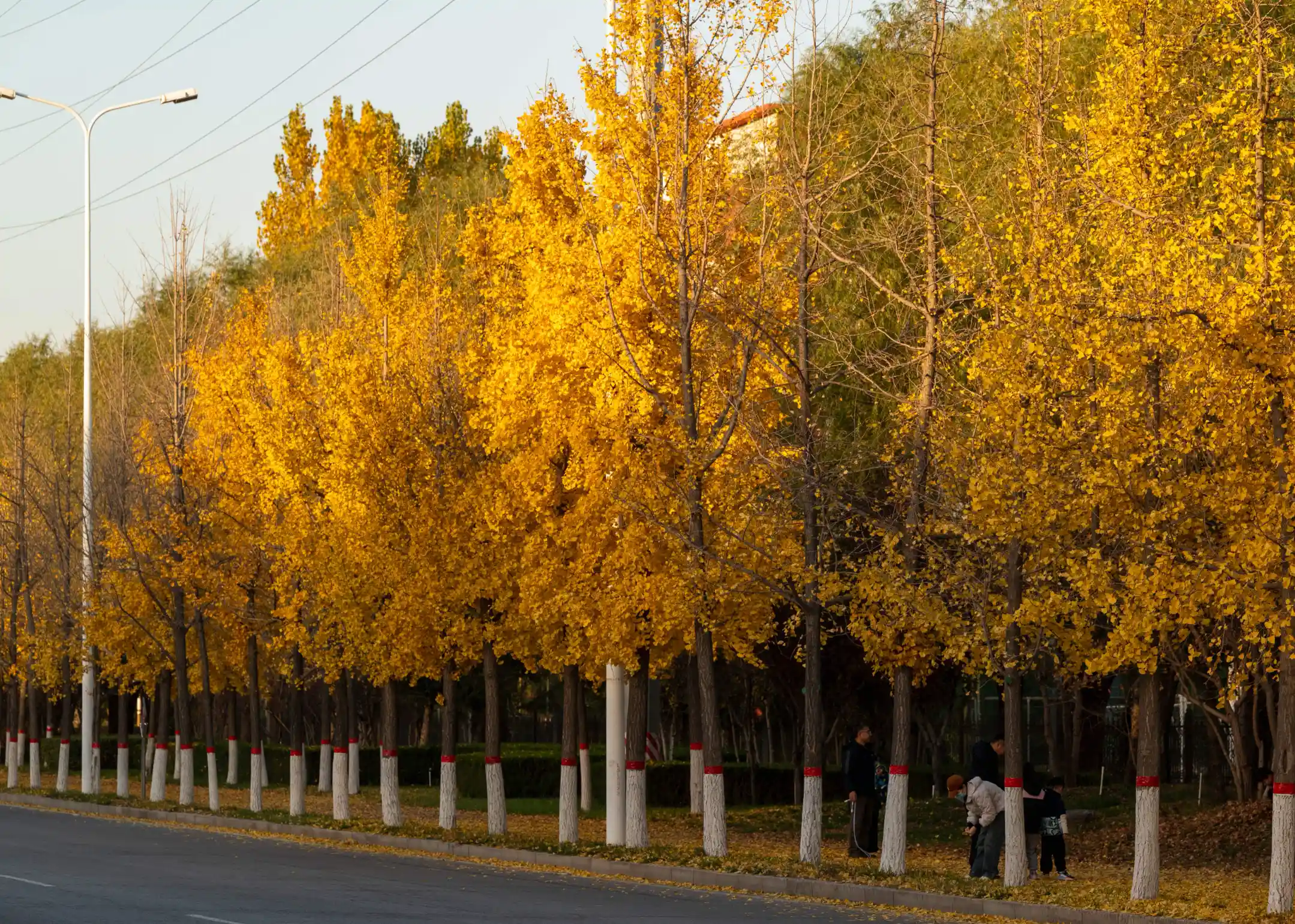 我走在一条种满银杏树的大道,